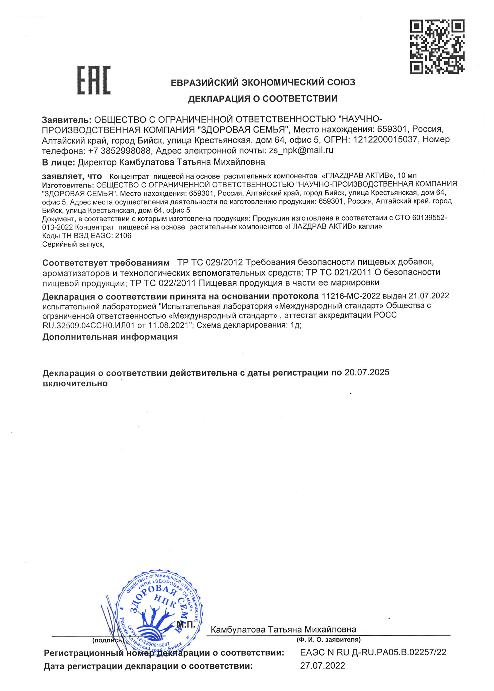 СТО 60139552-013-2022 Концентрат пищевой на основе растительных экстрактов «ГЛАZДРАВ АКТИВ»