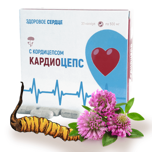 Растительные капсулы «Кардиоцепс» с кордицепсом - гармонично воздействуют на весь организм и даже при самых серьезных нарушениях способствуют нормализации состояния сосудов, крови, лимфы, мозга, и сердца - органов, которые отвечают за мобилизацию организма и устранение причин и последствий заболеваний. Кордицепс является особенно ценным средством для стабильного лечения коронарных болезней сердца и для нормализации концентрации тромбоцита коллагенного происхождения в артериях, способен продолжительно увеличивать кровоток коронарных сосудов, а также регулировать соотношение кальция и фосфора в крови. Кордицепс эффективен для регуляции общего иммунитета, снижает вероятность возникновения стресса, стимулирует кровообращение и показан при гипертонии.