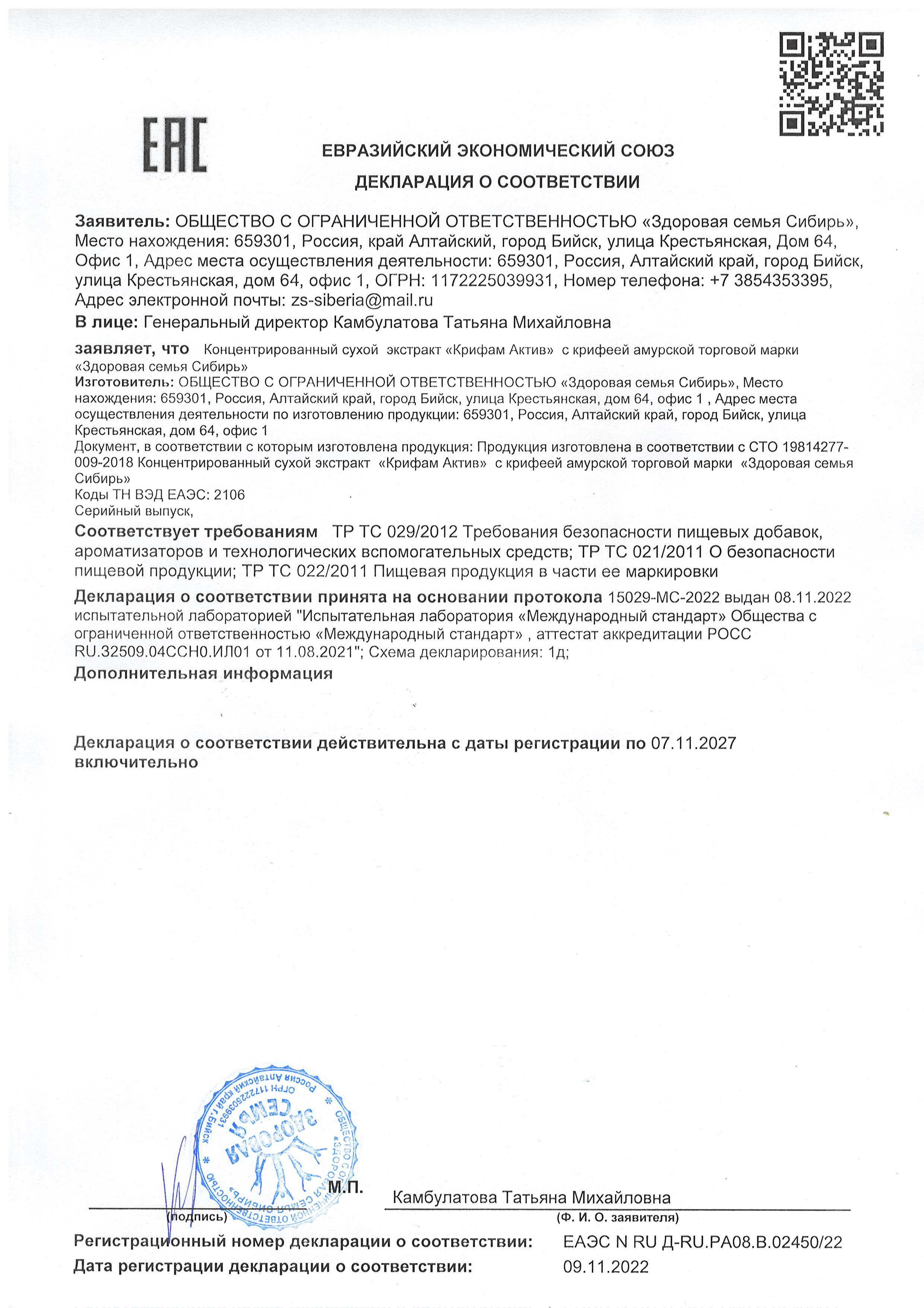 ЕАЭС № RU Д-RU.PA08.B.02450/22 от 09.11.2022