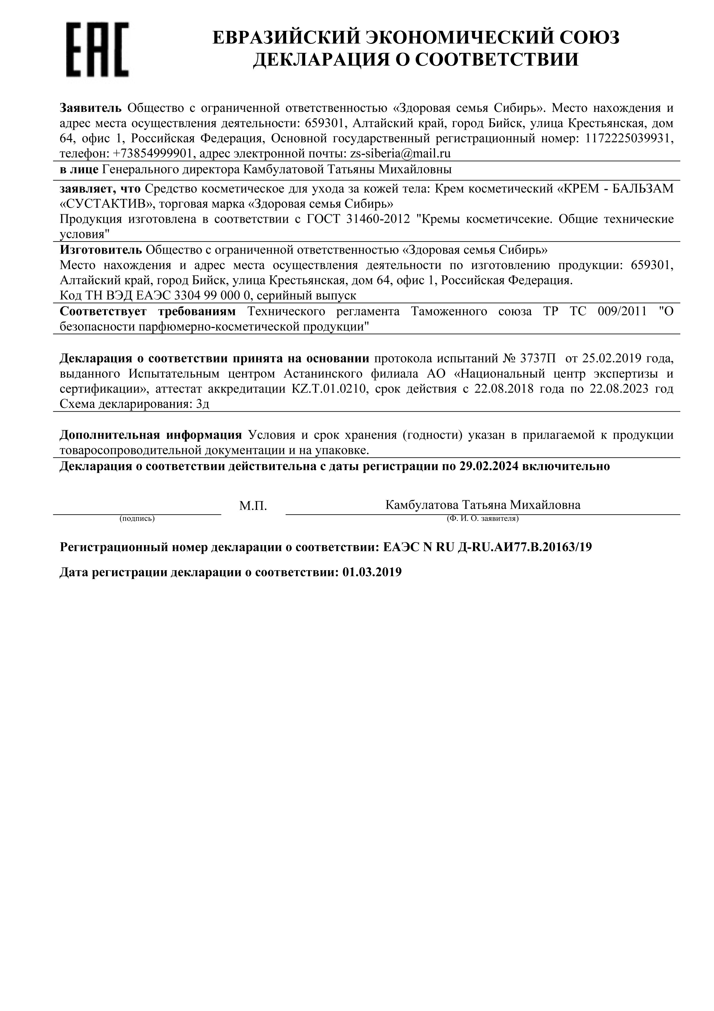 Адрес производства: 659301, Алтайский край, г. Бийск, ул. Крестьянская, д. 64, офис 1